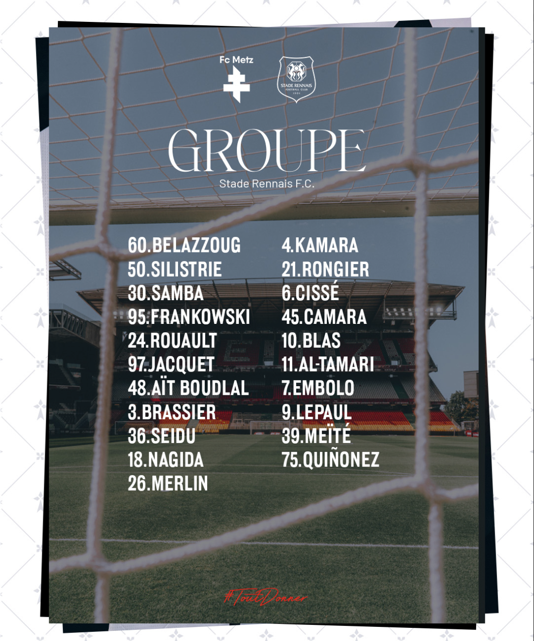 Le Stade rennais a dévoilé son groupe pour aller à Metz.